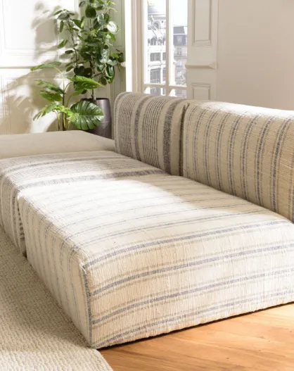 GLORIA - Canapé modulable 6 pièces en coton gris et beige