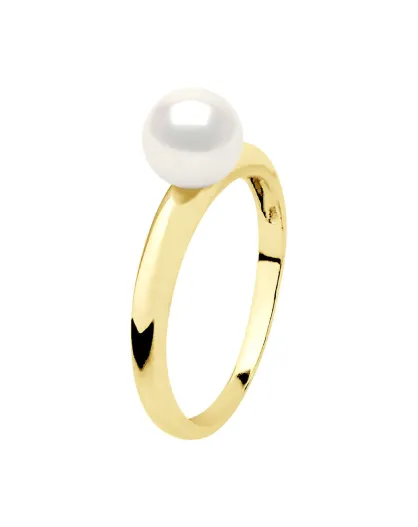 Bague Or jaune & Perle de Culture d'Eau Douce Ronde blanc naturel