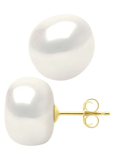 Boucles d'oreilles Or jaune & Perle de Culture d'Eau Douce Boutons blanc naturel