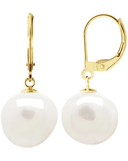 Boucles d'oreilles Or jaune & Perle de Culture d'Eau Douce Baroques blanc naturel