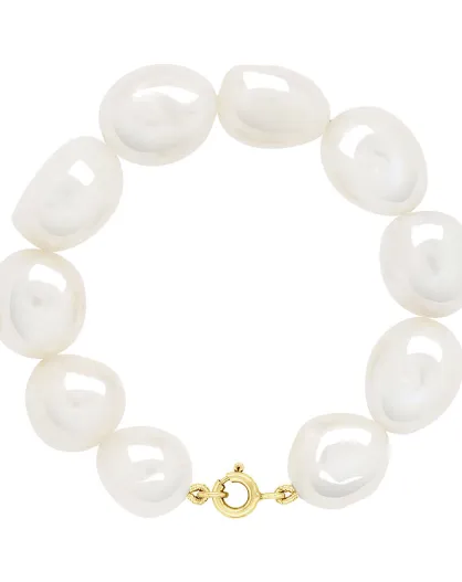 Bracelet Or jaune & Perles de Culture d'Eau Douce Baroques blanc naturel
