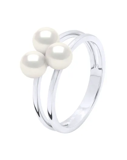 Bague Argent & Perles de Culture d'eau Douce Rondes blanc naturel