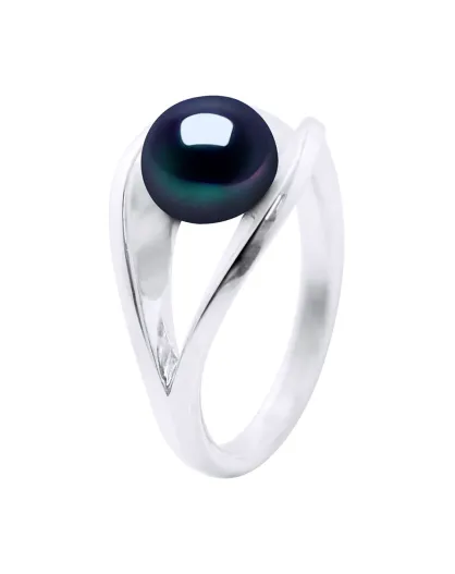 Bague Argent & Perle de Culture d'Eau Douce Bouton noire