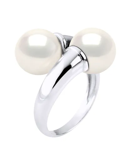 Bague Argent & Perles de Culture d'eau Douce Rondes blanc naturel