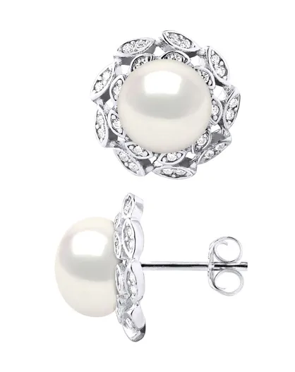 Boucles d'oreilles Argent & Perles de Culture d'eau Douce Boutons blanc naturel
