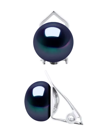 Boucles d'oreilles Argent & Perles de Culture d'Eau Douce Boutons noires