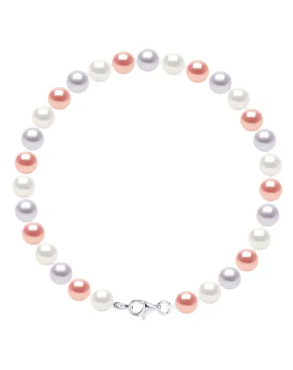 Bracelet Argent & Perles de Culture d'Eau Douce Rondes blanc/rose/gris