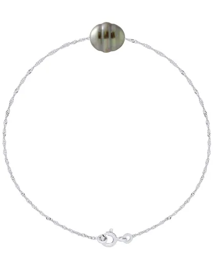Bracelet Argent Rhodié & Perle de Culture d'Eau Douce traversante ronde noire