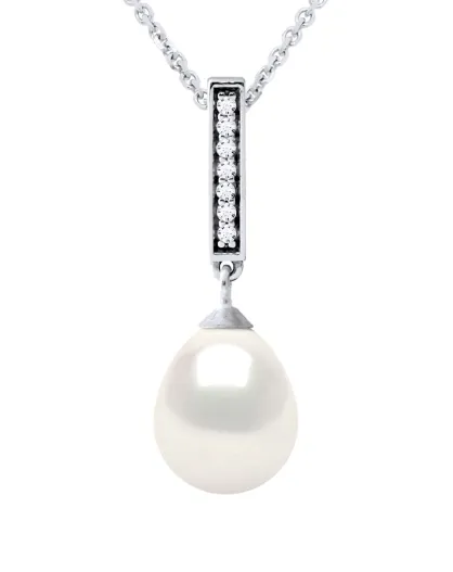 Collier Argent & Perle de Culture d'Eau Douce Poire blanc naturel