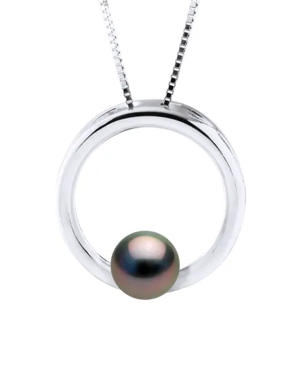 Collier Argent & Perle de Culture de Tahiti Ronde noire