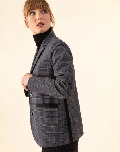 Veste blazer Rune double boutonnage imprimé Pince de Galles gris/noir
