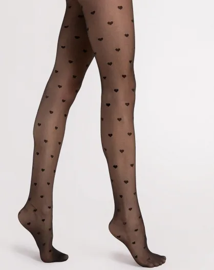 Collants Heartbeat modelants à motifs 20 deniers noirs