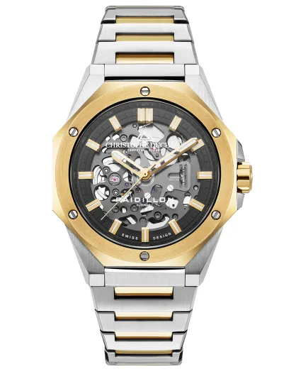 Montre Homme Automatique en Acier Raidillon Skeleton argenté/doré