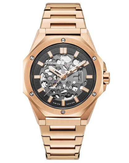 Montre Homme Automatique en Acier Raidillon Skeleton rose doré
