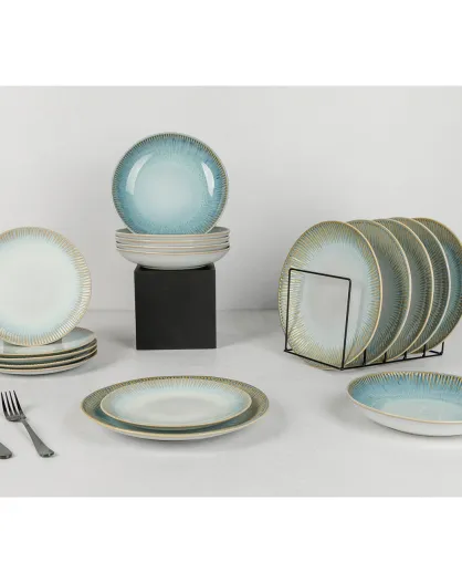 Service de table en Grès Listra bleu/beige - 18 pièces