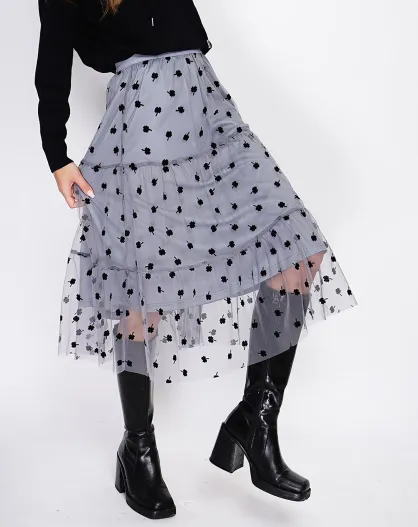 Jupe Fatoumata en Laine & Cachemire à franges gris chiné