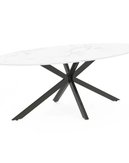 Table repas Céleste plateau ovale effet marbre 200cm et pieds croisés noirs