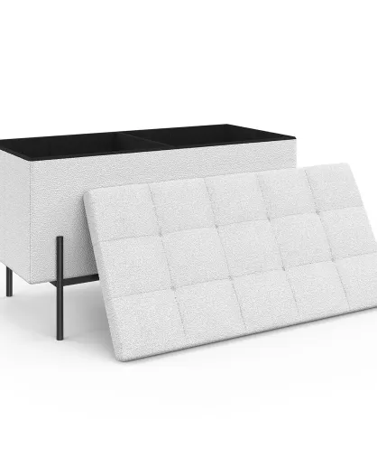 Banc coffre Loan en bouclette blanche et pieds noirs 76cm