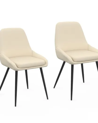 2 Chaises Ornella en tissu beige et pieds métal noirs - 47,5x54x79 cm