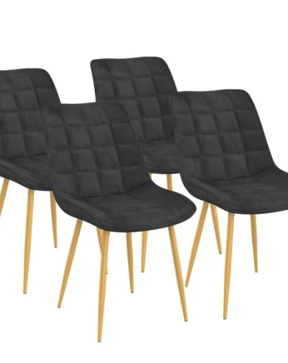 4 Chaises Melinda en velours matelassé gris foncé et pieds dorés