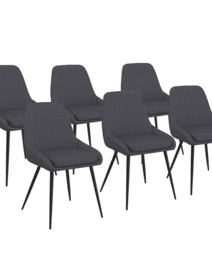 6 Chaises Ornella assise tissu gris foncé et pieds métal noirs