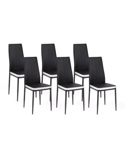 6 Chaises Jodie imitation cuir noir et blanc et pieds métal - 39x41.5x96 cm