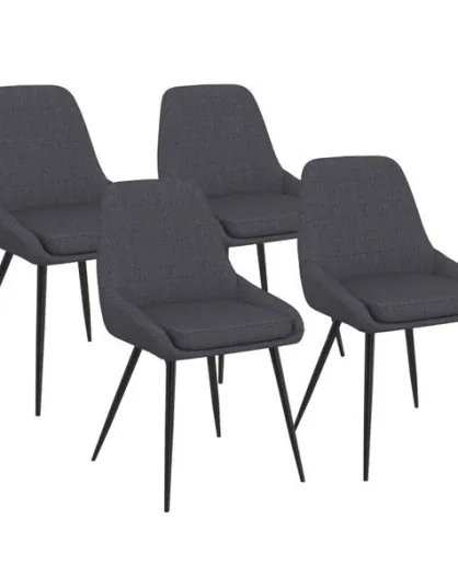 4 Chaises Ornella assise tissu gris foncé et pieds métal noirs - 47,5x54x79 cm