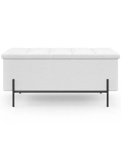 Banc coffre Loan en bouclette blanche et pieds noirs 100cm