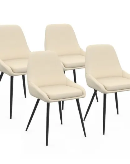 4 Chaises Ornella en tissu beige et pieds métal noirs - 47,5x54x79 cm