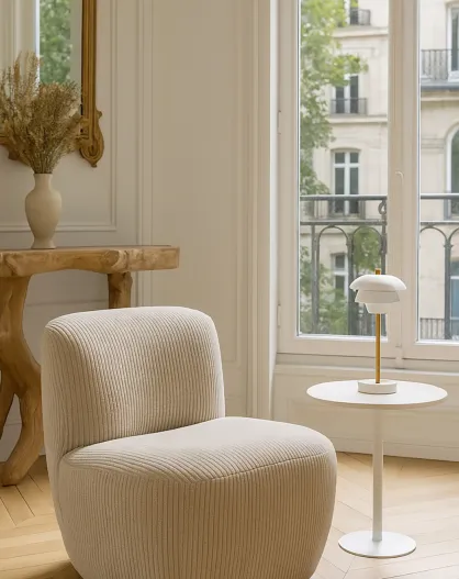 Fauteuil en Velours côtelé Côme beige - 65x71x68 cm