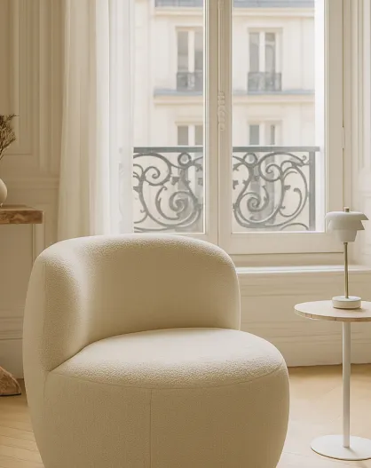 Fauteuil en tissu bouclette Malo écru - L.74xH.72xP.73 cm