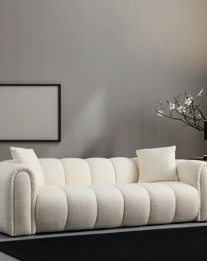 Curve - Canapé arrondi 3 places en tissu bouclé cream