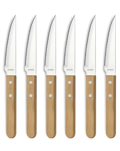 6 Couteaux à steak Jakob inox bois - 22x2x1 cm