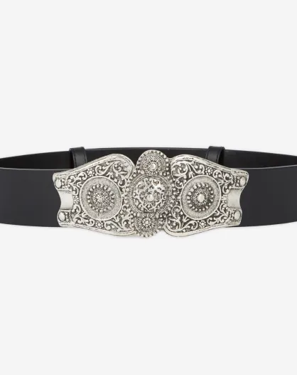 Ceinture Large en Cuir taille haute avec boucle Western noire