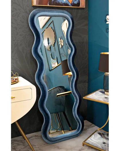 Miroir mural emily velours bleu - 60x6x160 cm