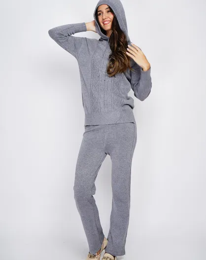 Ensemble Pull à capuche & Pantalon en Cachemire mélangé 4 fils flanelle