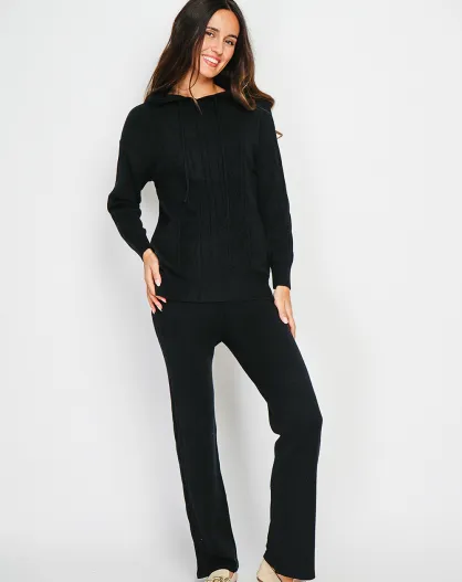Ensemble Pull à capuche & Pantalon en Cachemire mélangé 4 fils noir