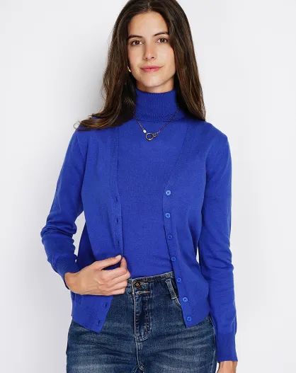 Twin-set en Cachemire & Soie mélangés col V classique 2 fils bleu royal