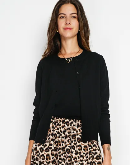 Twin-set en Cachemire & Soie mélangés col ras du cou classique 2 fils noir