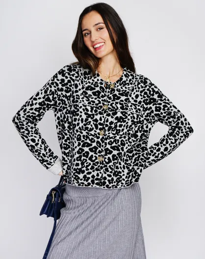 Gilet en Cachemire & Soie mélangés Léopard noir