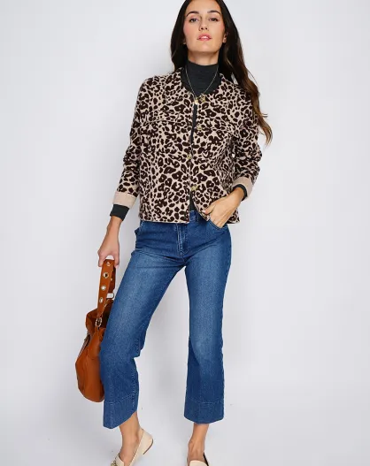 Gilet en Cachemire & Soie mélangés Léopard camel/marron