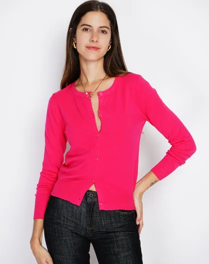 Cardigan en Cachemire mélangé ras de cou fushia