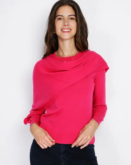 Pull en Cachemire & Soie mélangés col ras du cou fushia