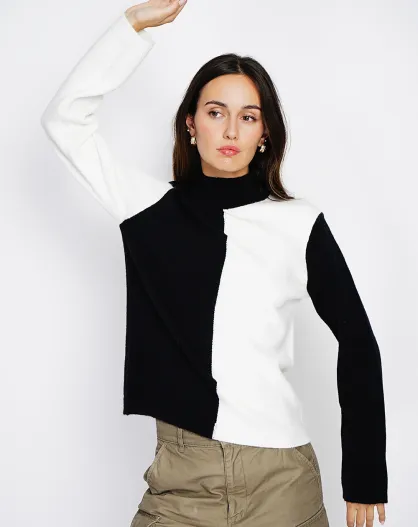 Pull en Cachemire mélangé col montant naturel/noit