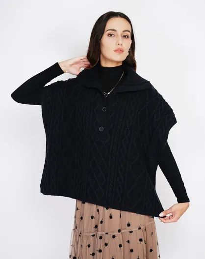 Pull large à capuche en Cachemire mélangé noir
