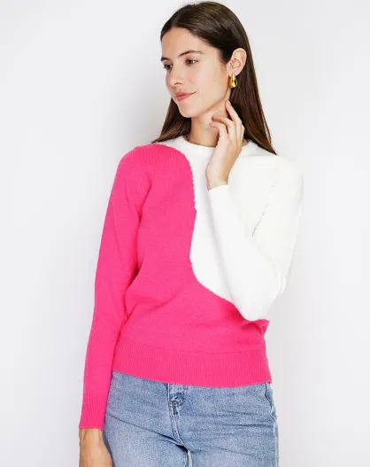 Pull en Cachemire mélangé col ras du cou en bi-couleur fushia