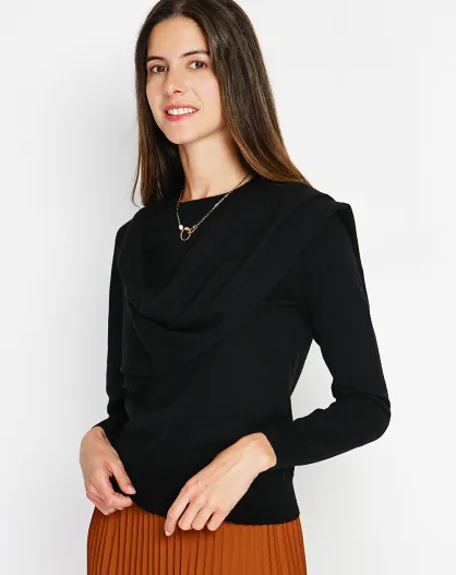 Pull en Cachemire & Soie mélangés col ras du cou noir