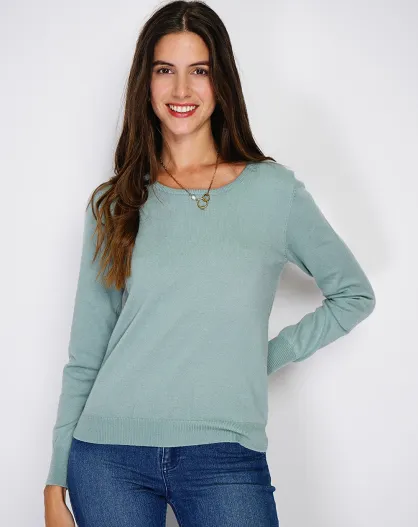 Pull en Cachemire & Soie mélangés col rond classique 2 fils jade