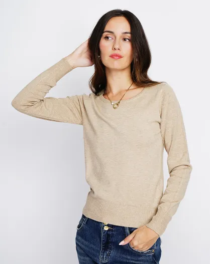 Pull en Cachemire mélangé col rond camel