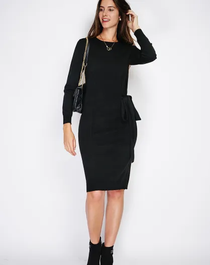 Robe en Cachemire & Soie col ras du cou avec ceinture noire